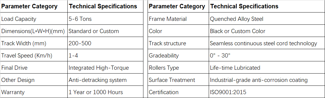 Crossbeam tracked undercarriage with 5-6 tons load capacity for drilling rig transport vehicle