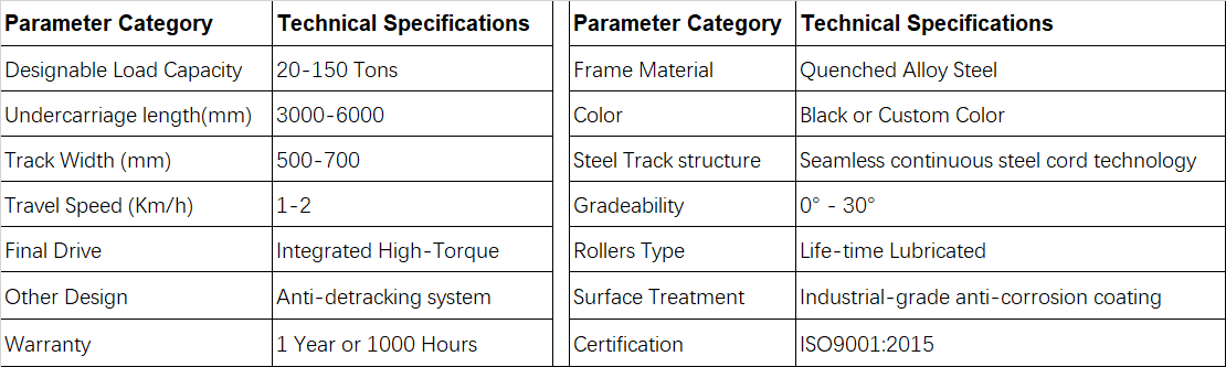 Rubber track undercarriage’s carrying capacity is 0.8 ton-30 ton.